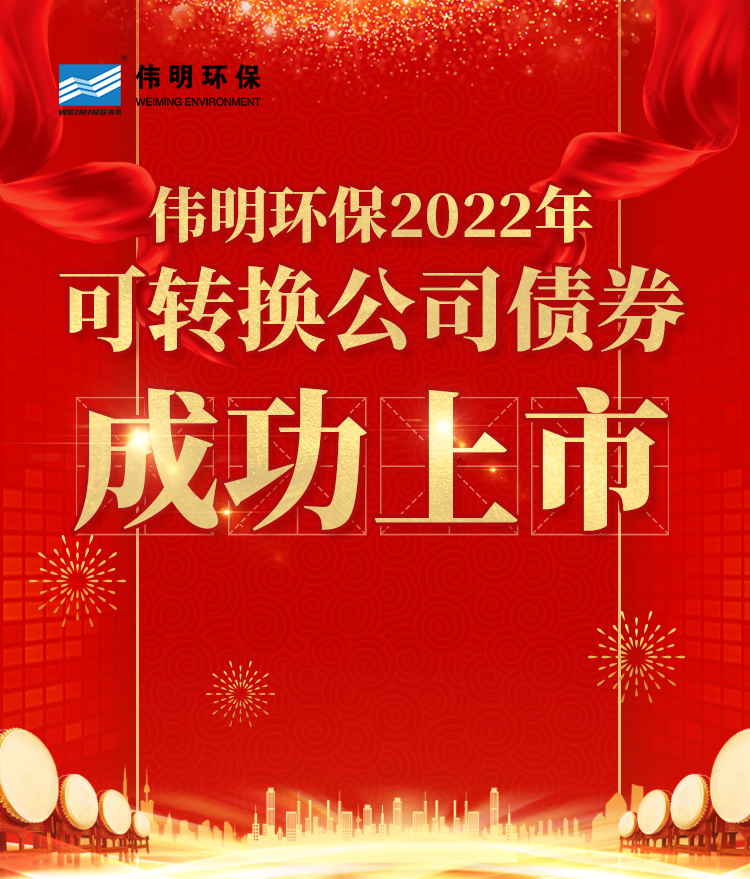 The convertible corporate bonds (Bond Abbreviation: Wei 22 Convertible Bonds, Code: 113652) issued by Weiming Environment Protection Co., Ltd. with approval from the China Securities Regulatory Commission (CSRC) were successfully listed on the Shanghai Stock Exchange on August 12, 2022. On the first trading day, the bonds surged by 30% to a high of RMB 130, closing at RMB 128.24 with a 28.24% increase, and recorded a trading volume of RMB 64.59 million.