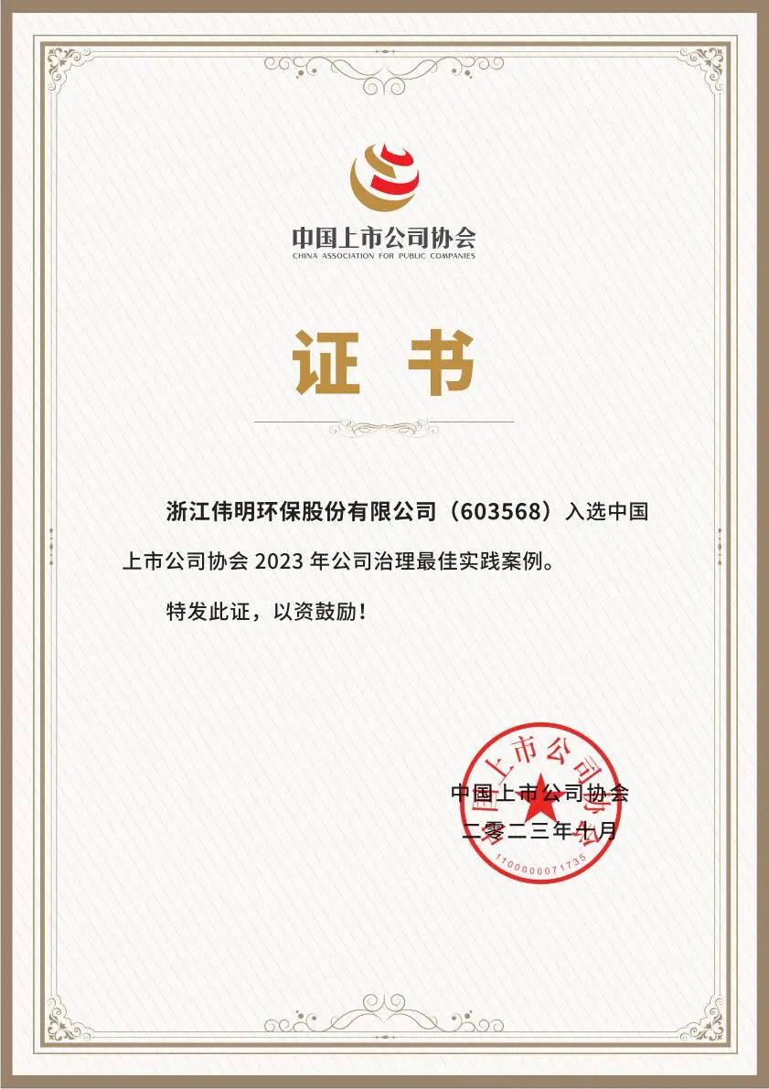 Recently, in the "2023 Best Corporate Governance Practice Case Initiative" organized by the China Association for Public Companies (CAPCO), the company stood out among over 5,000 A-share listed companies in China and was selected as a "2023 Best Corporate Governance Practice Case" by CAPCO. The achievement has also been included in the China Listed Companies Governance Report.
