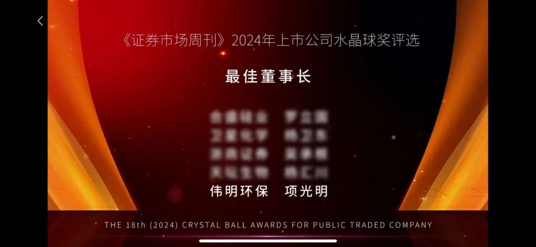 Furthermore, Chairman Xiang Guangming was awarded the "Best Chairman Award" in the Crystal Ball Awards, while Vice President, CFO, and Board Secretary Cheng Peng received the "Outstanding Board Secretary Award" at the 2024 Capital Power Annual Selection. These accolades demonstrate the capital market and financial media’s strong recognition of Weiming’s investment value and corporate governance. They serve as a powerful motivation for the company to continue refining its core business, enhancing investor value, and strengthening management capabilities in the future.