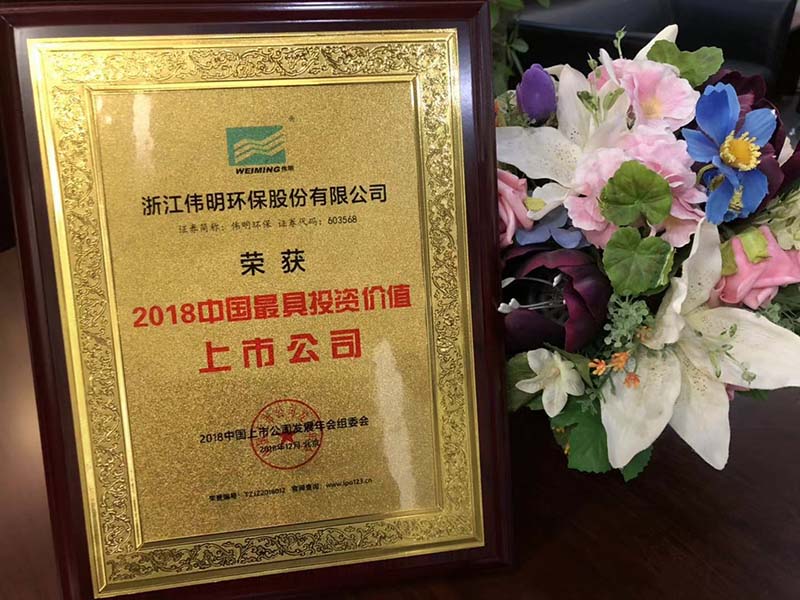 11月24日,在第十八届中国上市公司百强高峰论坛上,伟明环保以33.11%的平均增长率荣登2018年中国最具成长性上市公司排行榜,并被授予“中国百强企业奖”。12月19日,伟明环保在2018中国上市公司发展年会上获评“2018中国最具投资价值上市公司”,项光明董事长被授予“2018中国上市公司领军人物”称号,程鹏副总裁被授予“2018中国百强上市公司优秀董秘”奖。