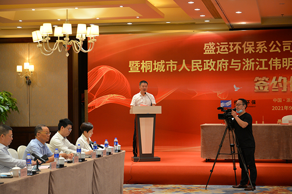 瓯海区委常委林照光赞誉伟明环保是瓯海的一张“金名片”,与桐城市政府、盛运环保的协作正逢其时、空间广阔、潜力无限,此次合作必将推动两家公司的做大做强,加快成为瓯桐两地绿色发展的强大引擎。
