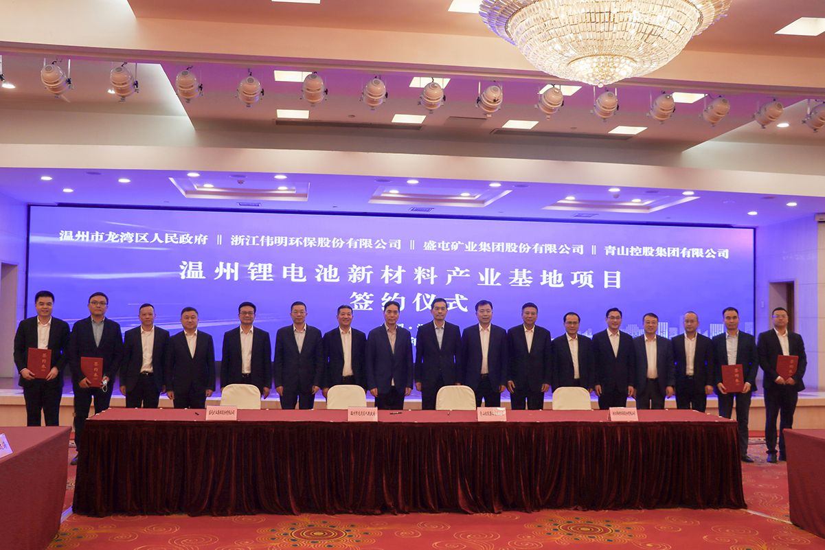 今天下午,三家企业与龙湾区签订温州锂电池新材料项目合作协议,项目即将落户温州市龙湾区。在三家企业中,青山控股和伟明环保创始人同为温商,将项目落户温州,充分表现了他们的家乡情怀。