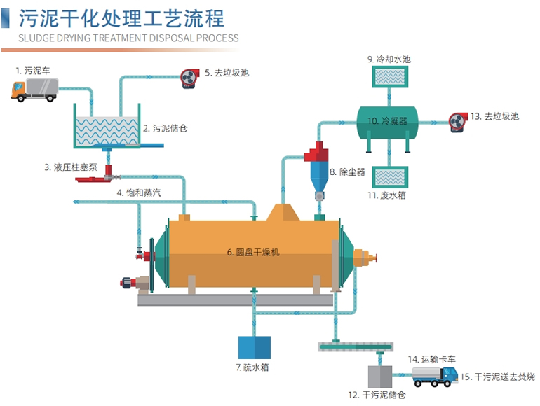 项目设计日处理污泥50吨,以EPC总承包方式建设,其中污泥干化主设备——圆盘干燥机系伟明设备公司自主设计、生产制造。